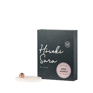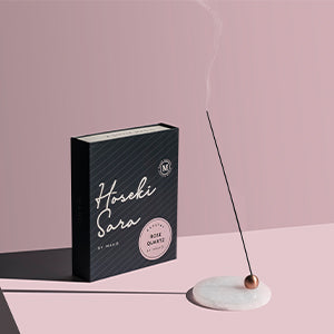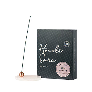 A handcrafted rose quartz dish adorned with a brass incense holder to help better connect with your relaxation practice. This incense burner creates the signature Hōseki Mari by MAHŌ Sensory.